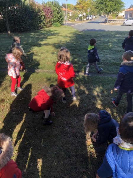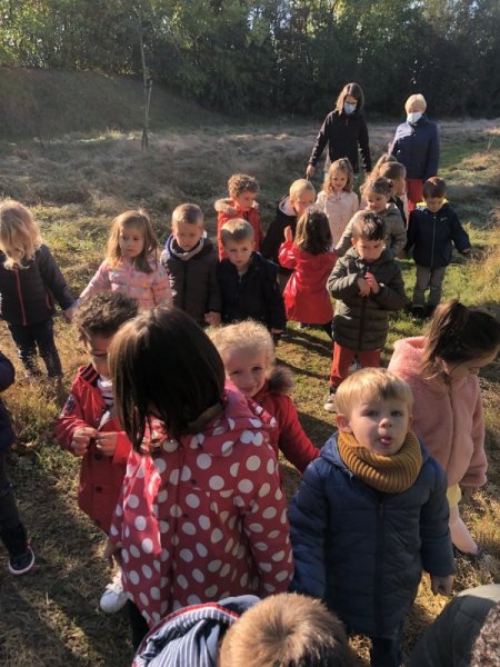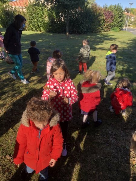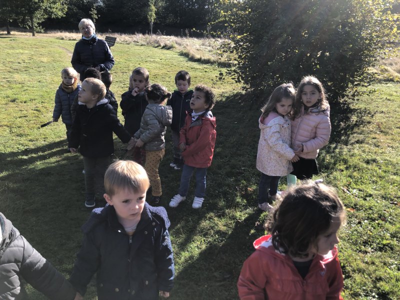 Jeudi 7 octobre, les PS-MS sont partis en balade à la découverte de l’automne. Ils ont observés les différentes couleurs des feuilles dans les arbres et au sol. Ils ont pu observer quelques fruits d’automne : pommes, poires. Ils ont également ramassé des trésors d’automne (des feuilles, des glands, des fruits d’aulnes) et ont observés des champignons en apprenant qu’il ne fallait pas y toucher. Des chants d’oiseaux ont aussi été écoutés.