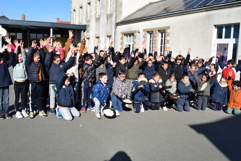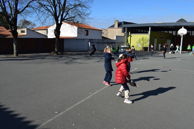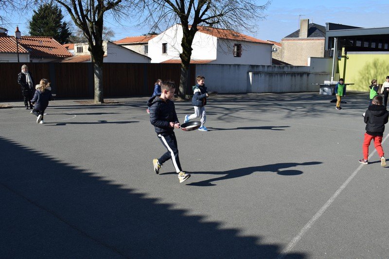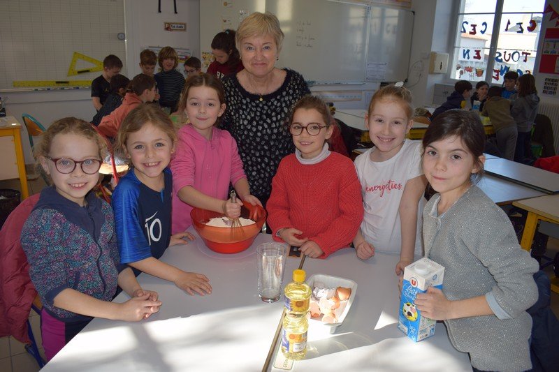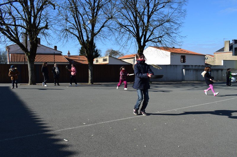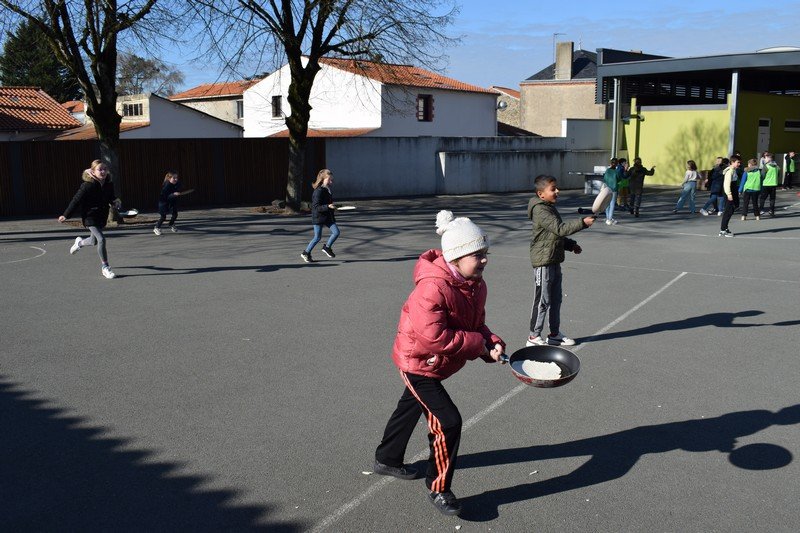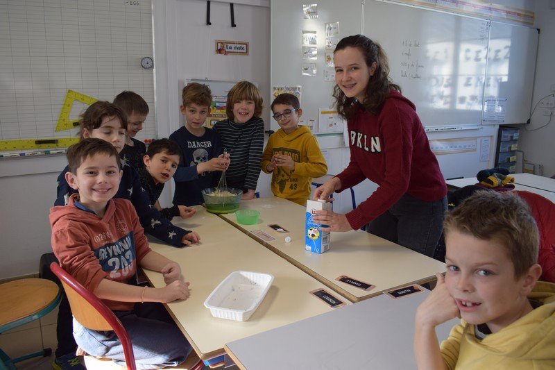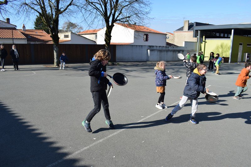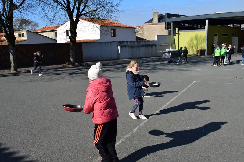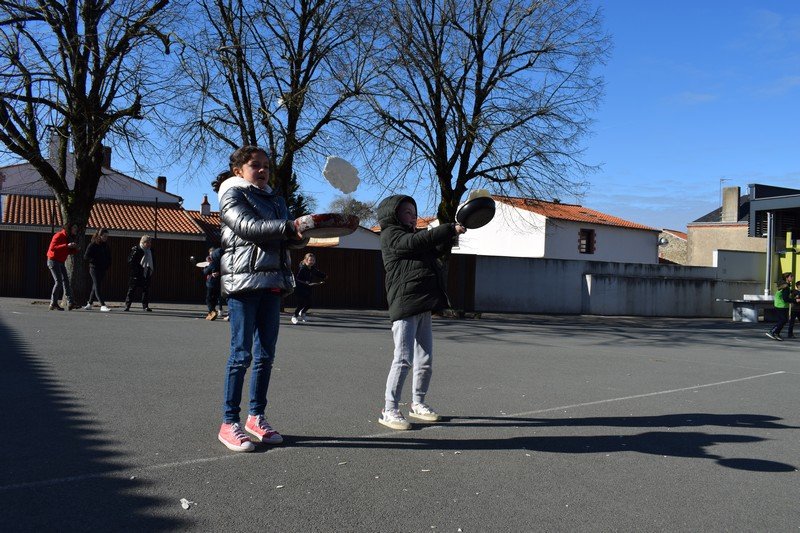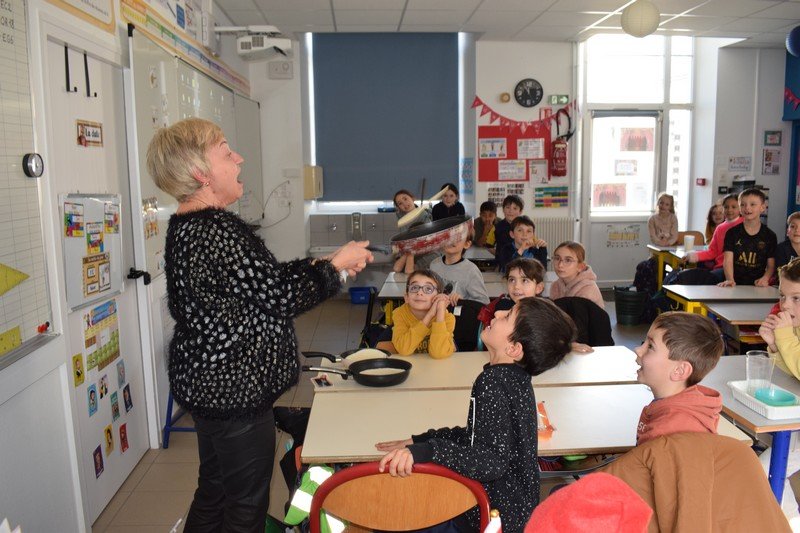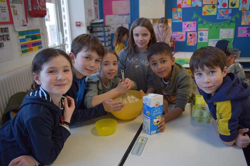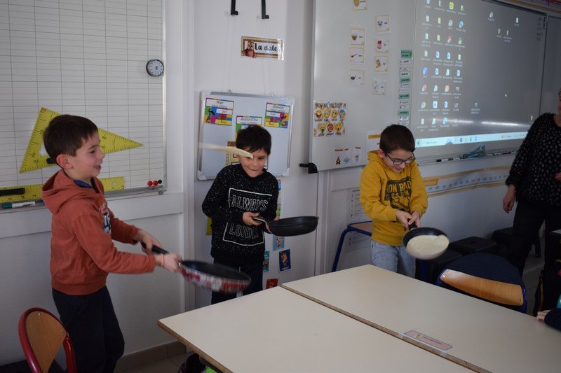 Vendredi 10 février, les élèves de CE1 et CE2 des classes de Betty et Anne-Sophie ont participé à une journée un peu spéciale pour travailler la civilisation anglaise : the Pancake Day. Les élèves ont découvert cette fête traditionnelle en travaillant sur le vocabulaire de la recette des pancakes : flour, butter, eggs, sugar, milk / bowl, spoon, pan. Les élèves ont ensuite préparé la pâte à pancakes par groupes. Ils ont aussi découvert la célèbre « pancake race » (course de crêpes) en vidéo. Puis, ils ont participé à une pancake race sur la cour de récréation. En effet, munis de leur poêle à la main, ils ont effectué un relais en faisant sauter leur pancake en s’ affrontant par équipes. Un beau moment de rire… Bien sûr, nous avons terminé l’après-midi en dégustant nos délicieux pancakes sur la cour de récréation en les partageant avec tous les élèves de cycle 2. Un beau moment de partage !
